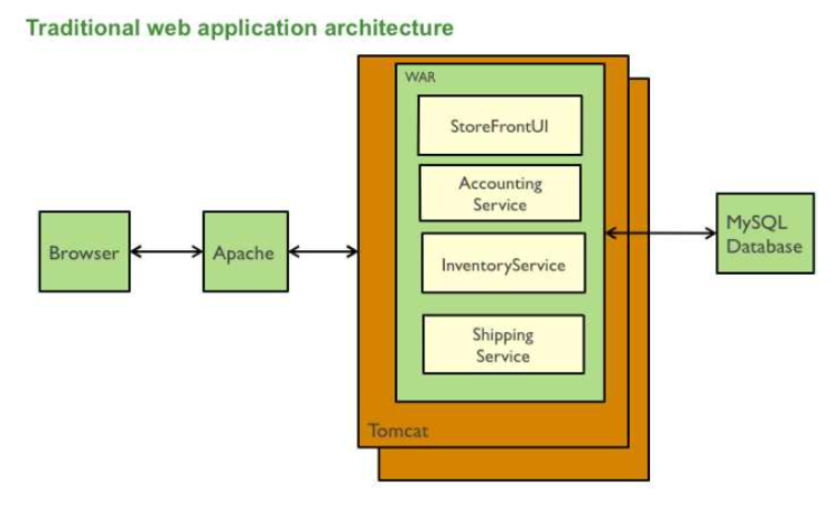 마이크로 서비스에서 WebFlux의 장점을 알아보기에 앞서, 기존에 자주 사용되었던 아키텍처 방식인 모놀리딕 아키텍처 환경에 대해 간단하게 알아보고 그 문제점에 대해 얘기해 보겠습니다.