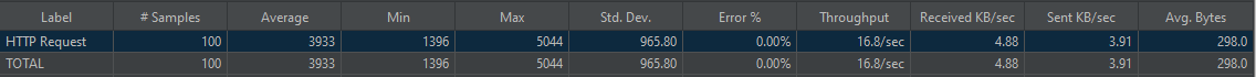 - 테스트 시, user 수(Number of Threads)는 100명으로, 초당 요청(Ramp-up period)은 1번으로, 반복 횟수(Loop Count)는 1로 설정 했습니다.