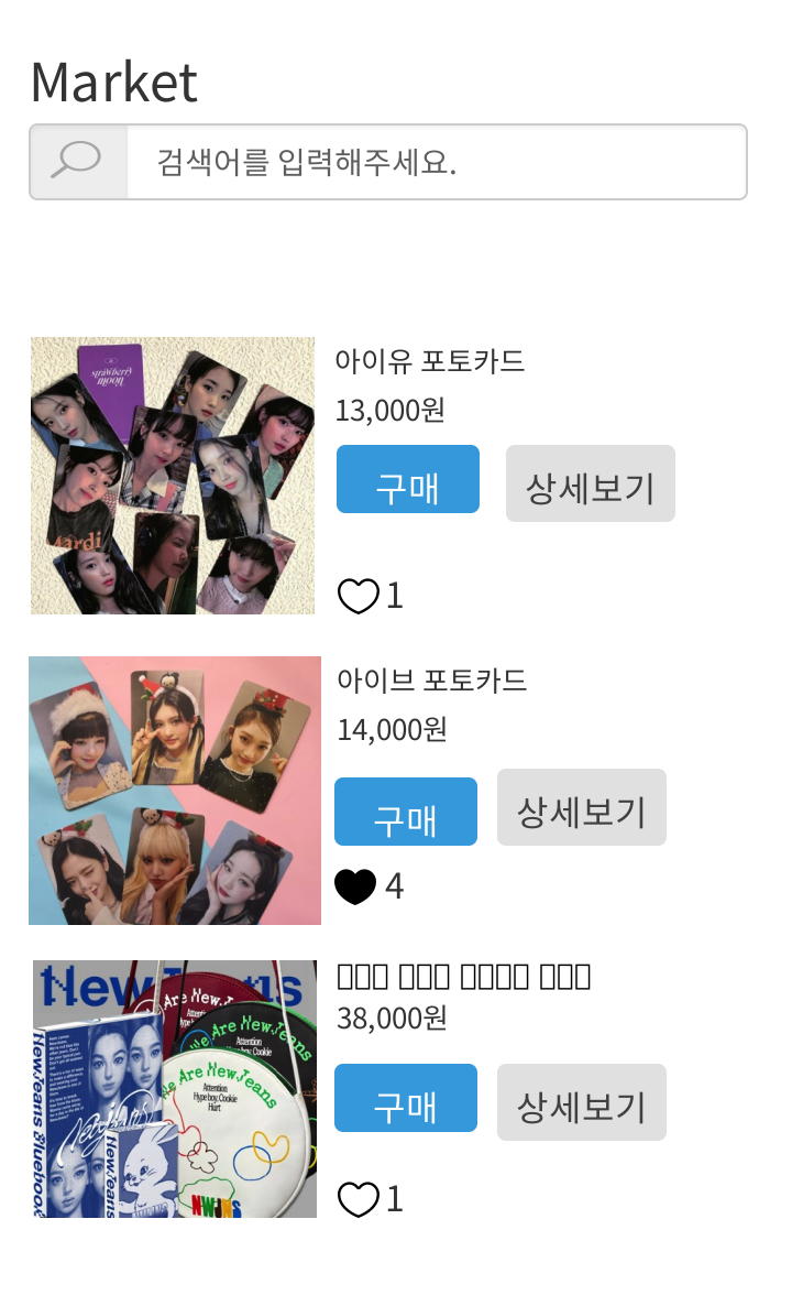 현재 굿즈포유 프로젝트에서는, 다음과 같이 등록된 상품의 목록을 조회할 수 있는 기능이 있습니다. 굿즈포유 서비스의 메인이 되는 화면이기에 메인 기능이라고 볼 수 있습니다. (페이징 처리 관련한 코드를 확인하고 싶으신 분들은 링크를 참고해주세요)