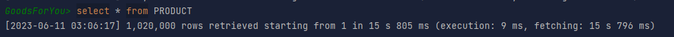 위 그림은 실제로 약 102만건의 데이터를 조회하는데 걸린 시간입니다.
