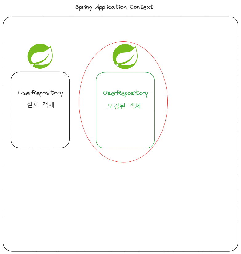 해당 애노테이션으로 mocking 된 객체는 스프링 애플리케이션 컨텍스트에서 동일한 유형을 가진 기존 빈을 대체합니다.