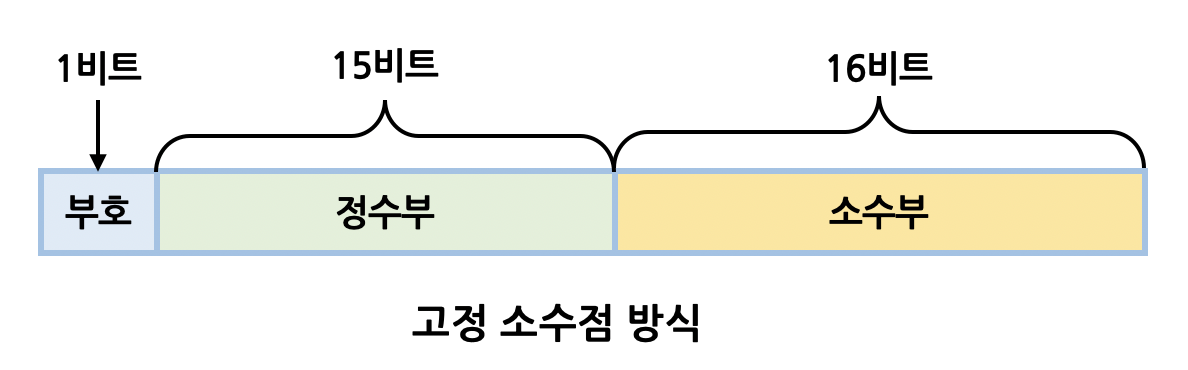 - 고정 소수점 표현방식(fixed point number representation)