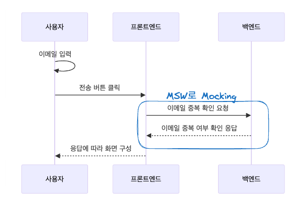 사용자 회원가입 시, 이메일 중복여부를 체크해야합니다. 이때 기존에 존재하는 이메일인지 체크하기 위해서는 백엔드 서버 API쪽에 요청을 보내 확인을 해야 합니다.
